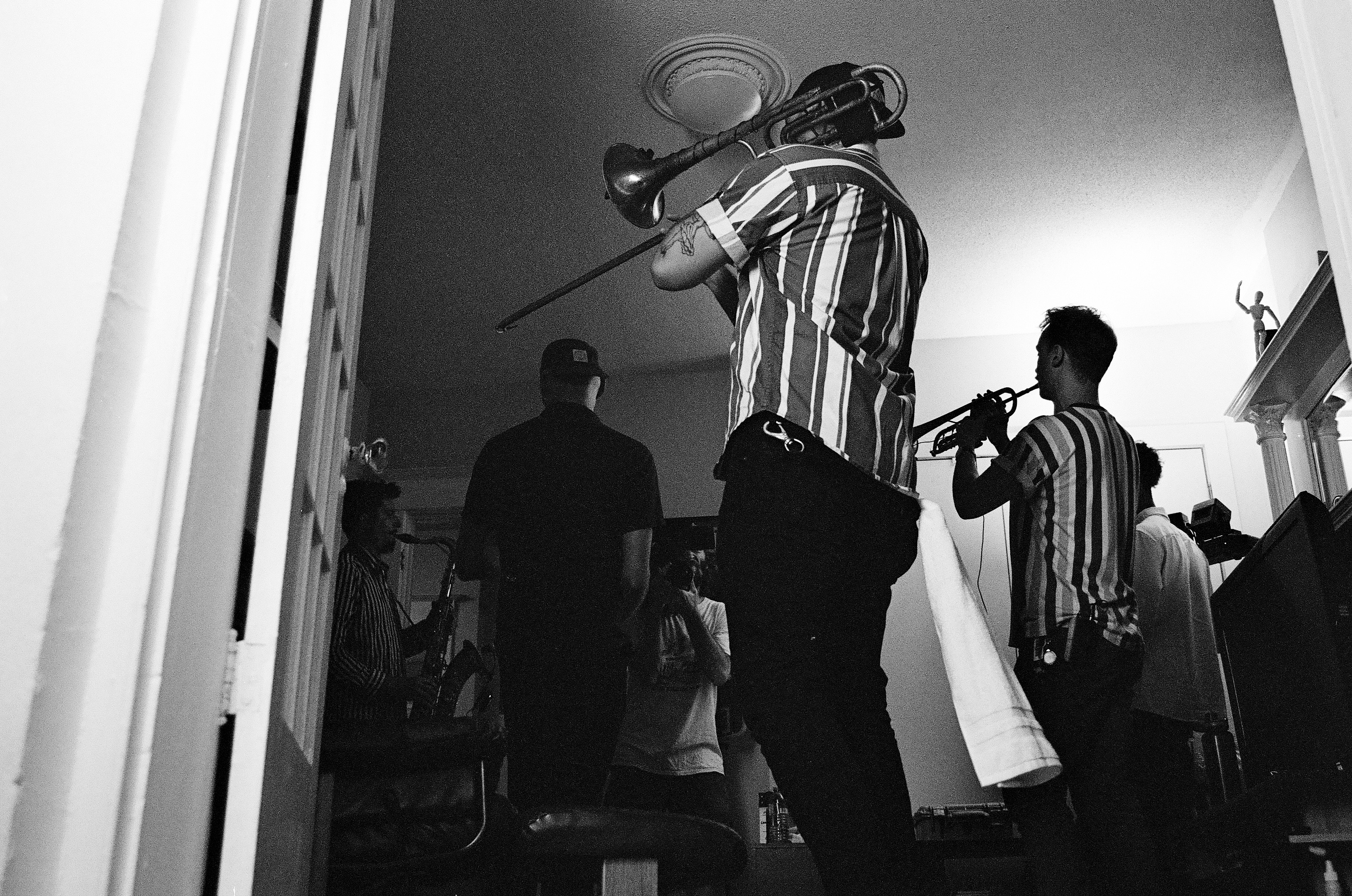 The Story: When director Mike Cowley was approached by Big Smoke Brass Band to shoot a live performance, he reached out to me to capture the behind-the-scenes of the production. The concept was to throw a ‘faux house party’ where the band would be performing their song LIZZO, with each instrument and member scattered throughout the home. I captured each of the practice runs and live performances, focusing heavily on filling every frame to reflect the closeness of not just the band, but the space they were performing. Ultimately my photos were used to promote the video before it’s release across social media.
